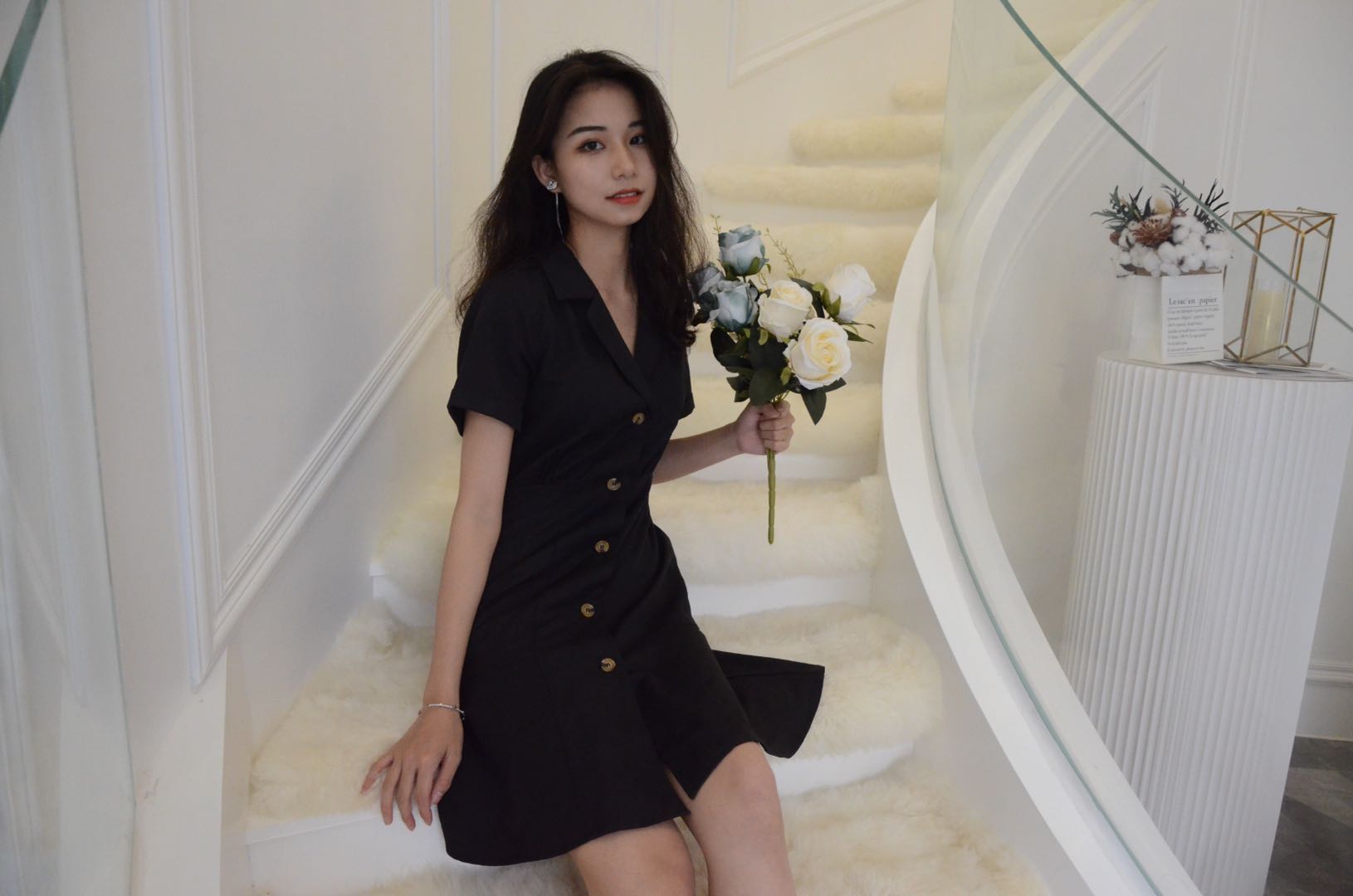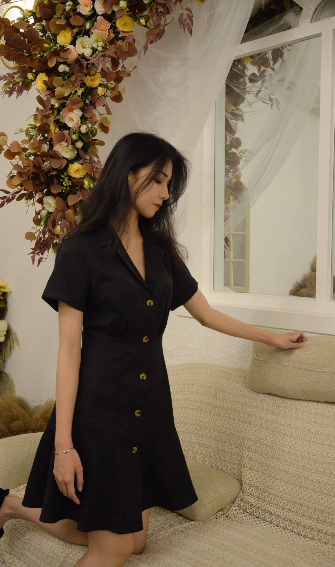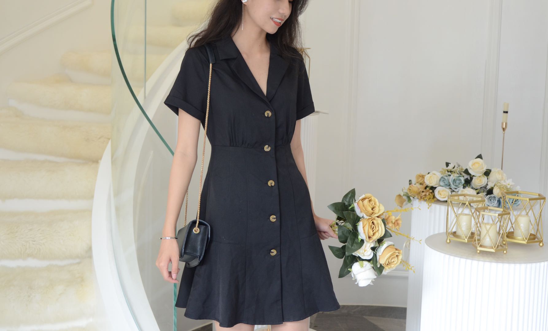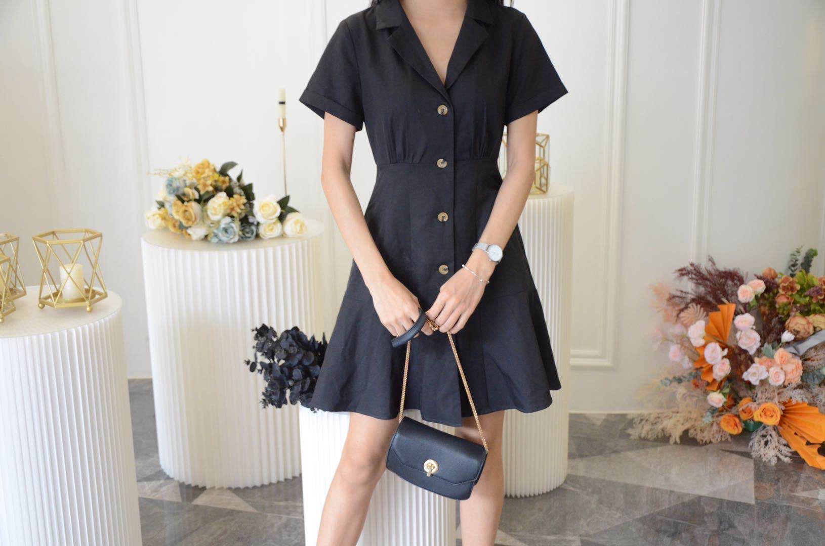 One-breasted dress with suit collar